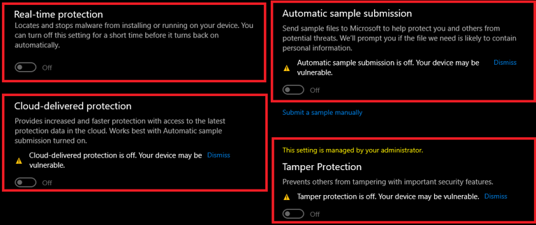 * Under the **Virus & threat protection settings** section, click **Manage settings**.