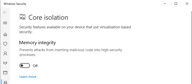 Set <mark style="color:$danger;background-color:$danger;">**Memory Integrity to Disabled**</mark>